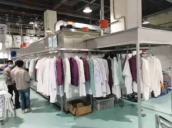 廣州杏林公司負(fù)責(zé)車間的經(jīng)理朱俊方熱情接待了華威公司銷售總監(jiān)趙建偉,趙建偉對(duì)設(shè)備進(jìn)行了認(rèn)真檢查,查看了設(shè)備整體運(yùn)行情況,特別關(guān)注了設(shè)備烘干衣物后的除皺效果。